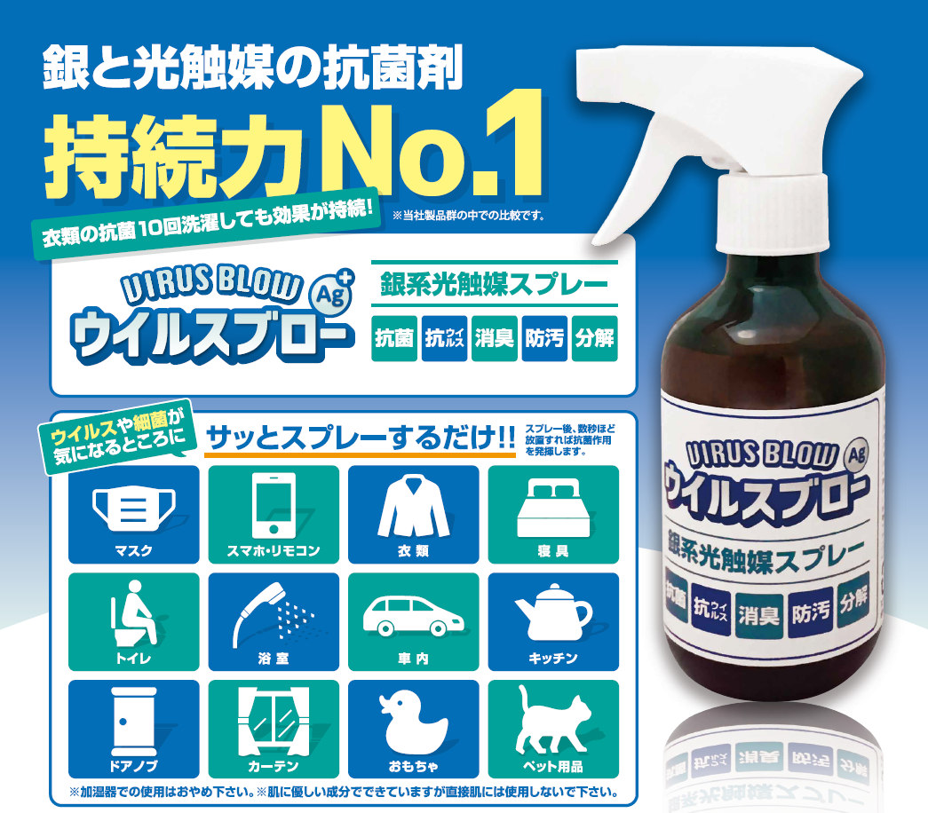 - 弊社が取扱うウイルブローAg+ 銀系光触媒スプレーについて、偽サイトを確認いたしました。【ご注意事項】にてご確認ください。