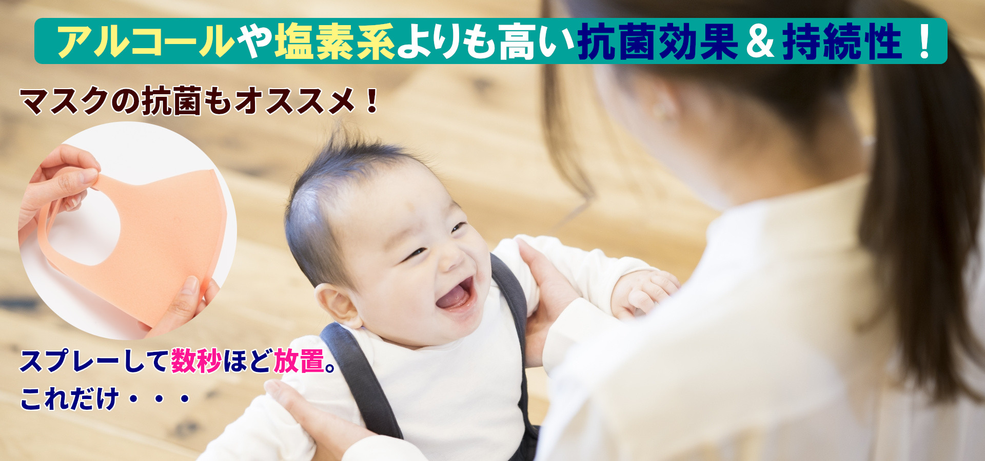 ウイルスブローAg+の粒子は、5~20ナノメートルのため、スプレーした素材に密着します。特に繊維は絡まるため性能が持続します。 安心・安全の日本製です。さまざまな衣類やマスクもOK!