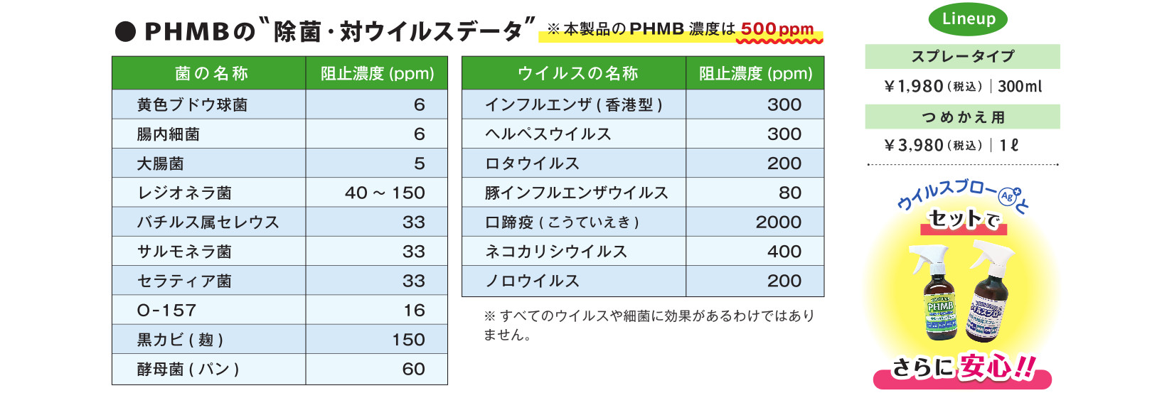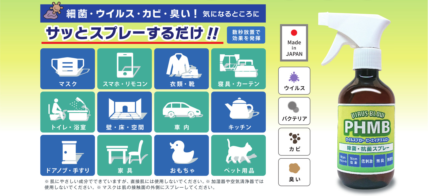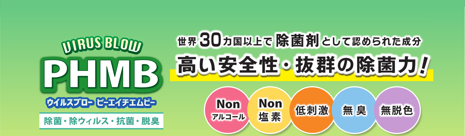 - ウイルブロー PHMB シリーズから「PHMB 除菌・抗菌スプレー」が登場!世界30ヵ国以上で除菌剤として認められた成分「PHMB」を使用した除菌剤。NEW